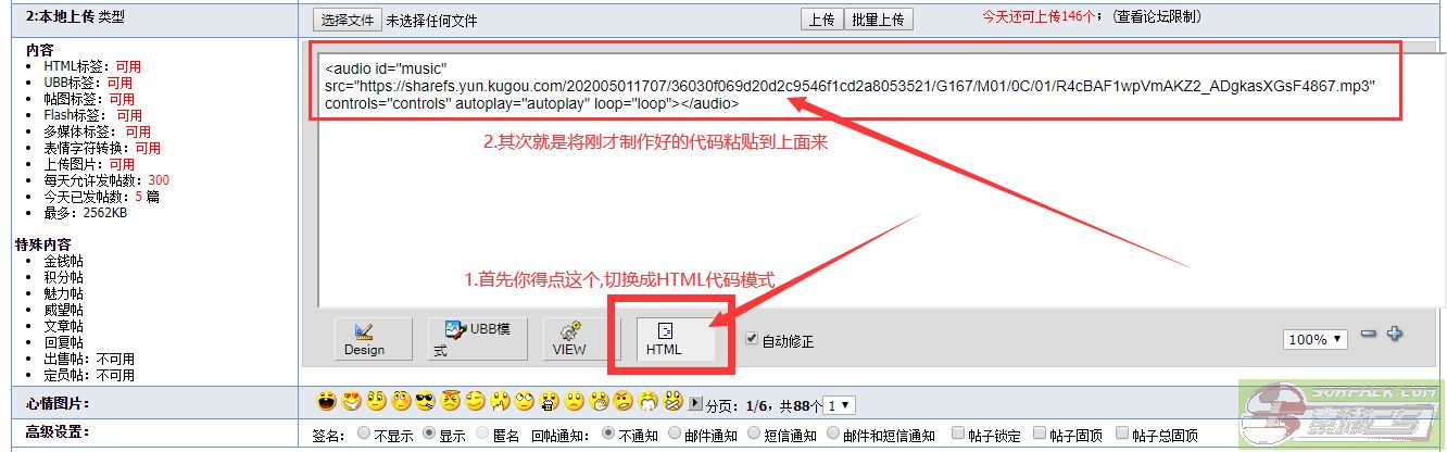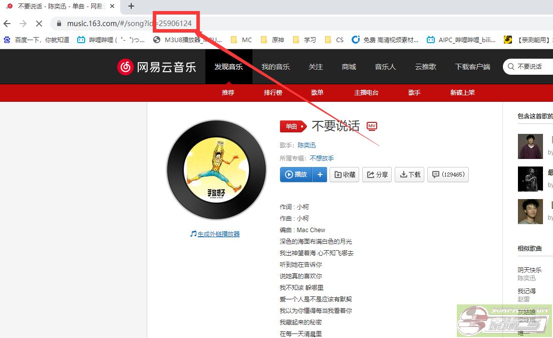| -- 作者:110ghjk -- 发布时间:2020-05-01 17:33:00 -- 本帖于2023年7月23日更新 更新内容: 获取外链地址方式(本次针对网易云音乐) 上面获取外链的地址可能由于音乐公司改动了什么东西,有些时候无法获取到外链 我这边补充一个获取网易云音乐链接的方法 (需要VIP的歌曲无法获取外链的哦, 请大家注意下) 首先你打开网易云音乐的网站,链接 ——> https://music.163.com 搜索你要获取的歌曲,并打开如下图所示的页面,且复制红框内的内容 ,也就是 id= 这个等号后面的那一串数字 就比如上图中所示,id=后面的数字是 25906124 然后再准备文本,将右边这一串网址复制→ http://music.163.com/song/media/outer/url?id=123456.mp3 粘贴到文本中并且将最后的 123456.mp3 改成刚才复制的数字 25906124 于是得到链接 http://music.163.com/song/media/outer/url?id=25906124.mp3 最后按照1楼的方法放在帖子内就可以播放音乐啦~ [此贴子已经被作者于2023-07-23 23:48:35编辑过]