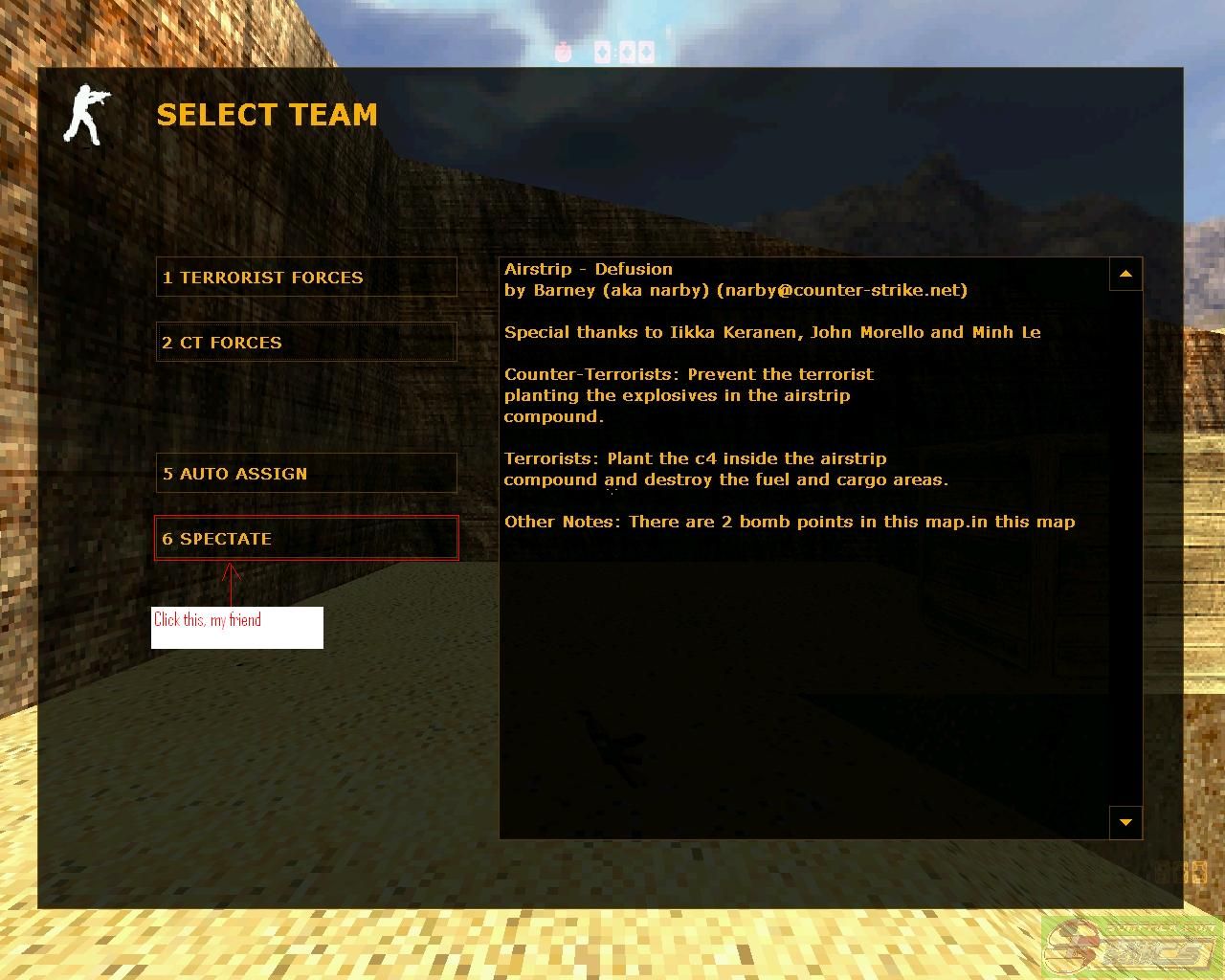 Figure 1.1: Shows choose 'Spectate' after joining the server