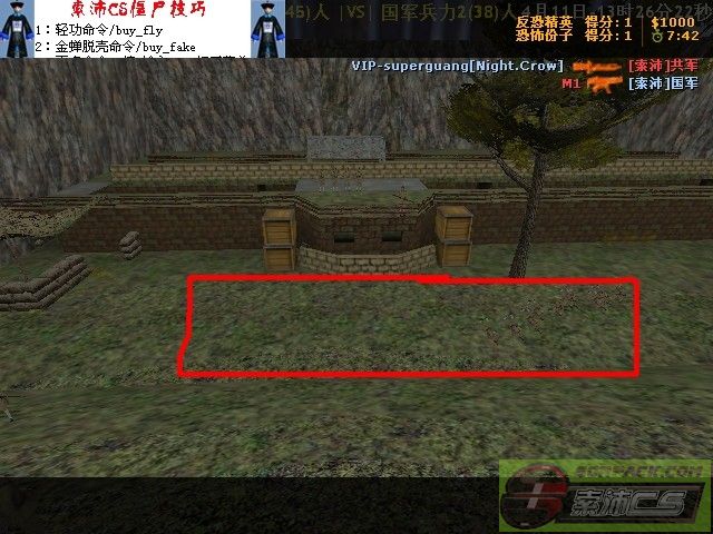 补给箱:补给箱里装有:子弹、手雷、AK47、M249、P90、T手枪、CT手枪、双枪、加20血、地雷[也就是减10HP]、2000元和任意一个兵种一名