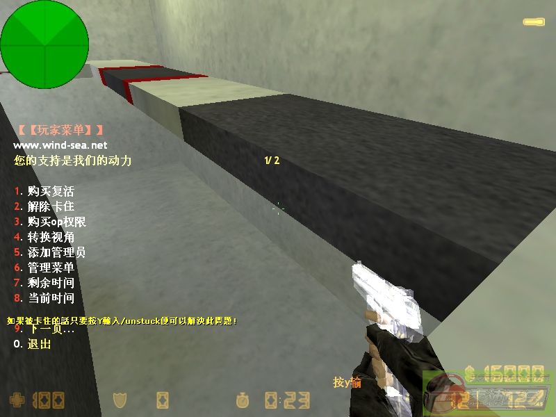 此版本较原1.83版添加了武器悬浮插件,复活功能由原来的16000改到现在的8000,其中部分插件多余语言已经被删除,添加上方时间显示插件,里边备有无摔伤插件(需自己在CS1.6\cstrike\addons\amxmodx\configs中的plugins.ini把最后一行的;删除,里边有说明,如果要关闭就加个;)但是没有死跑商场,网上的死跑商场都太变态了。