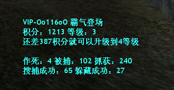 • 积分统计:服务器会详细统计T躲猫猫成功、CT搜捕成功、T被捕、CT打错物品死亡等数据,并且根据游戏分数计算等级,1等级加1血;