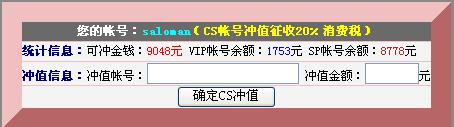 VIP会员可以在游戏中,给自己加金钱,目前服务器设置VIP帐号扣5元,CS游戏金钱加5000¥