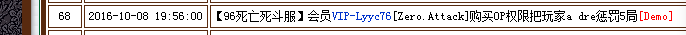 10月8日 晚上在96死斗服IP:s96.cs47.com:27026 被ID名字VIP-Lyyc76 Zero.Attack 购买权限给OP了,说我作弊(老是被我用AK打死)。