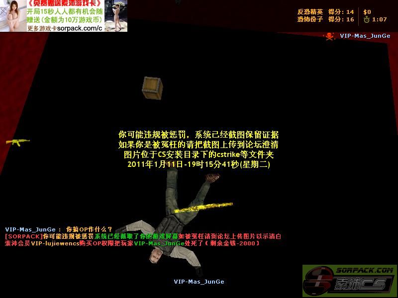 我又没作弊,你干嘛 OP我 ?还浪费我的2W枪,你说我作弊,我被当成作弊的感觉很难过,因为我玩CS不作弊的,只会遇见作弊才OP他,我又没OP权 我只能来投诉,你就OP我???