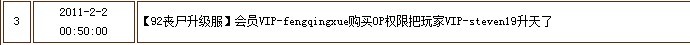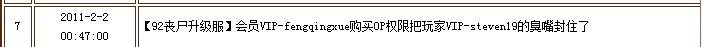 52011-2-2 00:50:00【92丧尸升级服】会员VIP-fengqingxue购买OP权限把玩家VIP-steven19***了