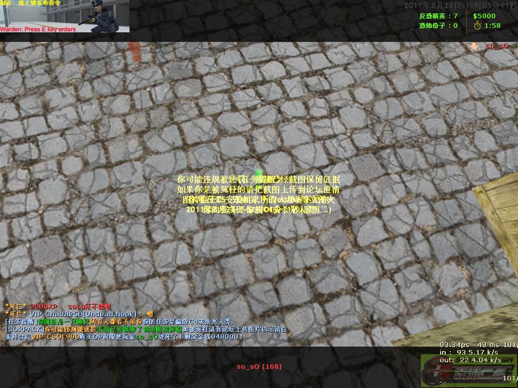 112011-8-23 10:59:00【15幽灵暗杀服(Undead.hook)】会员VIP-CSOL999购买OP权限把玩家so_SO处死了