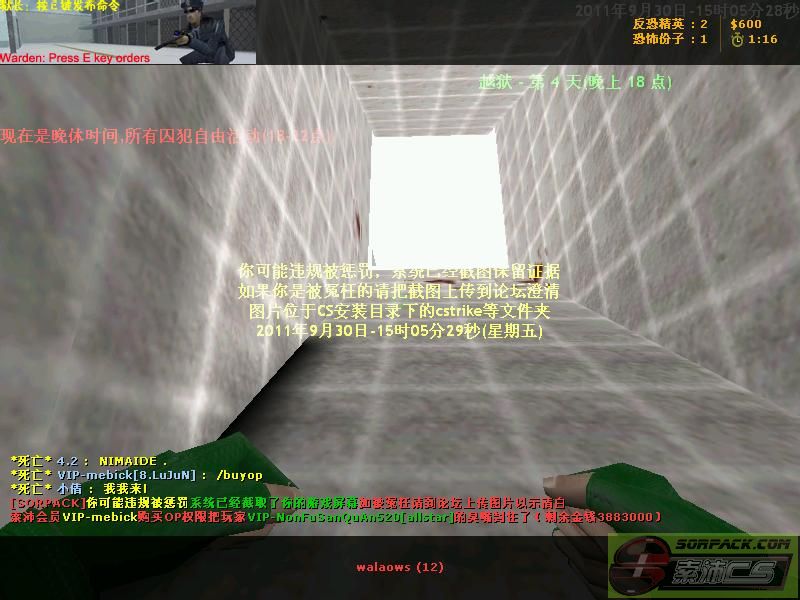 1112011-9-30 15:05:00【28越狱***服(P.L.Army)】会员VIP-mebick购买OP权限把玩家VIP-NonFuSanQuAn520[allstar]的臭嘴封住了